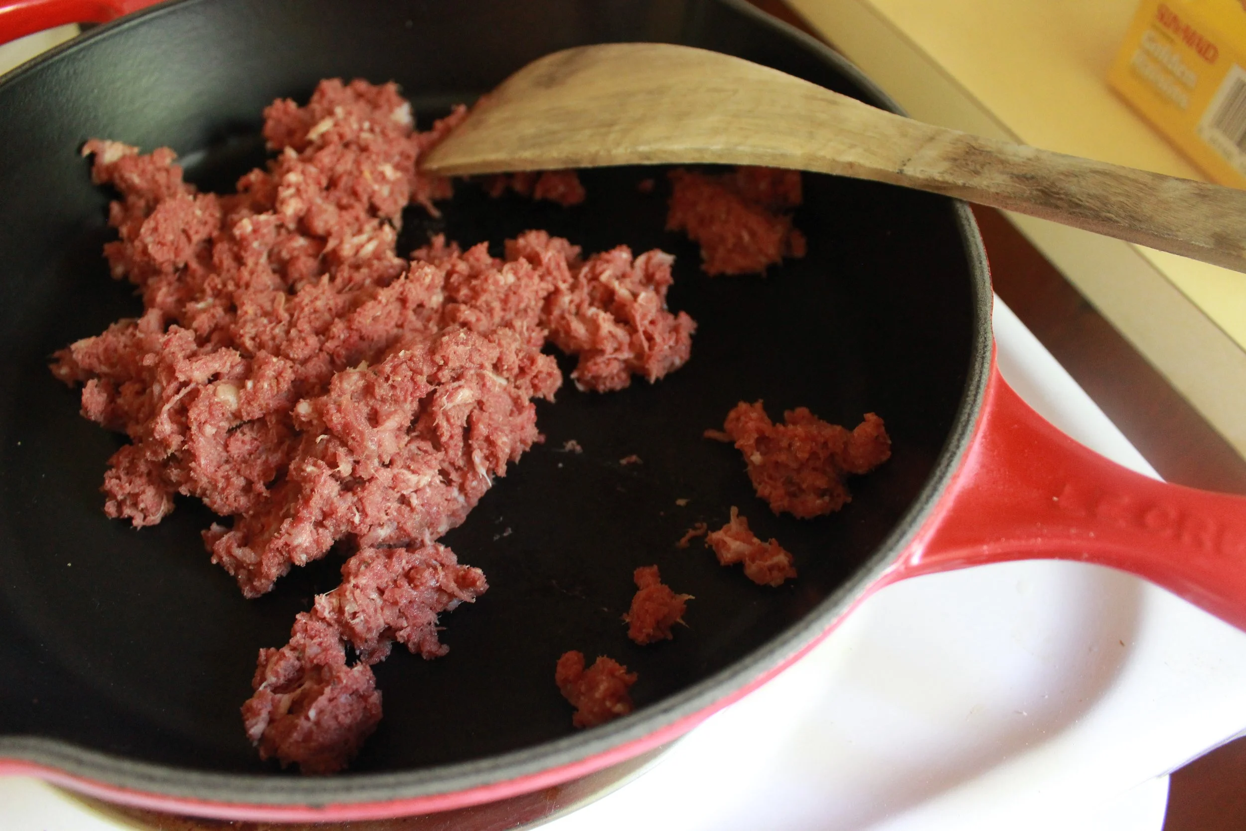 •In the food processor, take the chunks of pancetta and whatever beef scraps you have and buzz it up to a paste. Remove and set aside